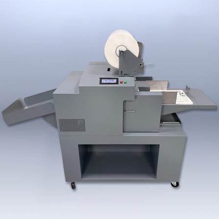 The popular V-590 Sheet Cutter is uniquely designed to handle cut sheets generated from a digital printer. The V-590 automatically feeds the sheets and cuts/slits*/perforates* in the desired position. With increased ±0.5 cutting accuracy, faster processing speed, and other top-notch enhancements, the quality-engineered feeding and cutting system of the V-590 delivers precise and razor sharp edges on every finished piece, making it ideal for checks, coupons, notices, tickets, labels, membership cards, and much more